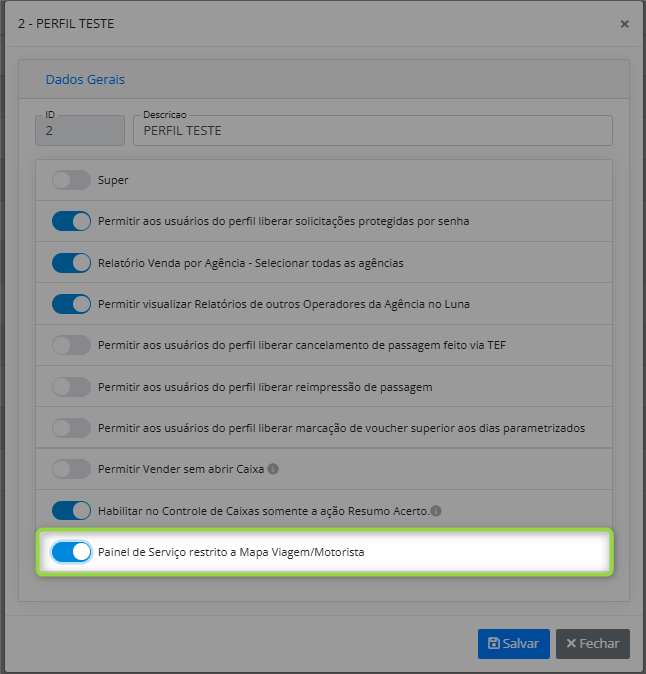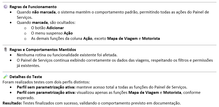 Nova parametrização de restrição de acesso ao Painel de Serviços conforme o perfil do operador. |