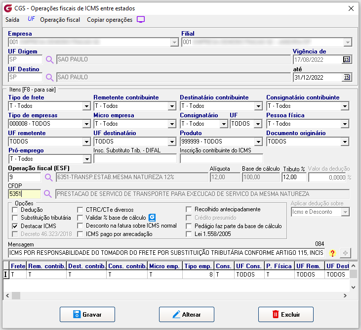 Podemos cadastrar as operações de forma genérica utilizando a opção Todos, desta forma independente do que está cadastrado no cliente, o sistema irá encontrar o CFOP único para tudo.