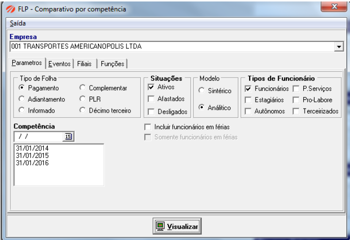 Permitir Comparações e Análises de Competências. Menu: Relatórios > Relatórios mensais > Comparativo por competência