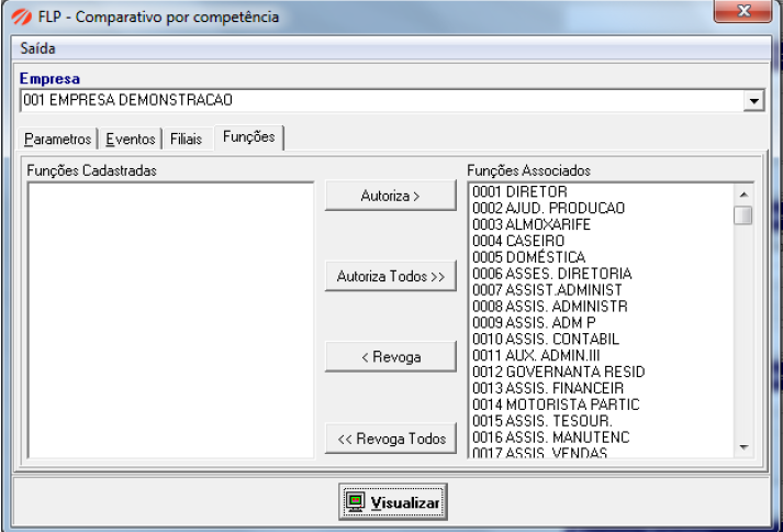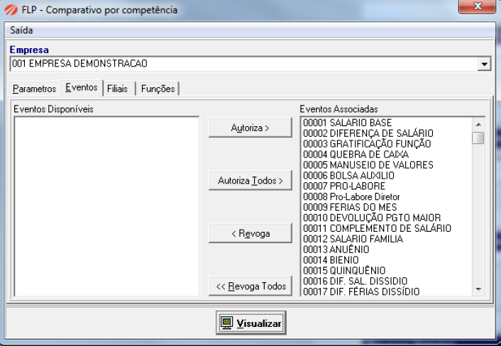 No menu você irá selecionar a Empresa desejada, e vai preencher as informações na aba Parâmetros. ![]() Na eventos você vai associar os eventos desejados. ![]() Aba filiais, você vai selecionar uma ou mais filiais que deseja gerar o relatório. ![]() Aba funções, é possível selecionar uma ou mais funções. ![]() Relatório será gerado conforme as informações preenchidas no menu e nas abas. ![]() |