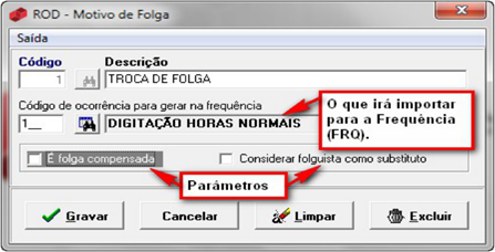Cadastro > Motivos de folgas.