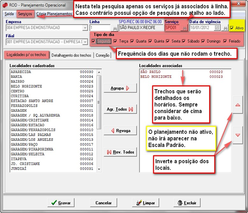 Importante: Os locais onde serão feitos as paradas (refeição, embarque/desembarque, lanche,etc) NÃO deverá ser associado. Isso é feito posteriormente no detalhamento dos trechos.