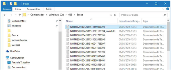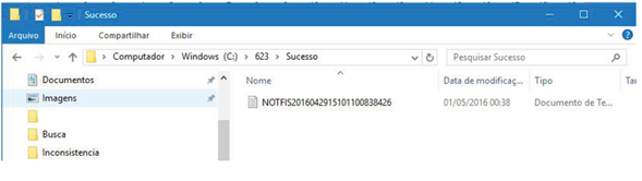 Os arquivos não importados, são encaminhados para a pasta de inconsistências: