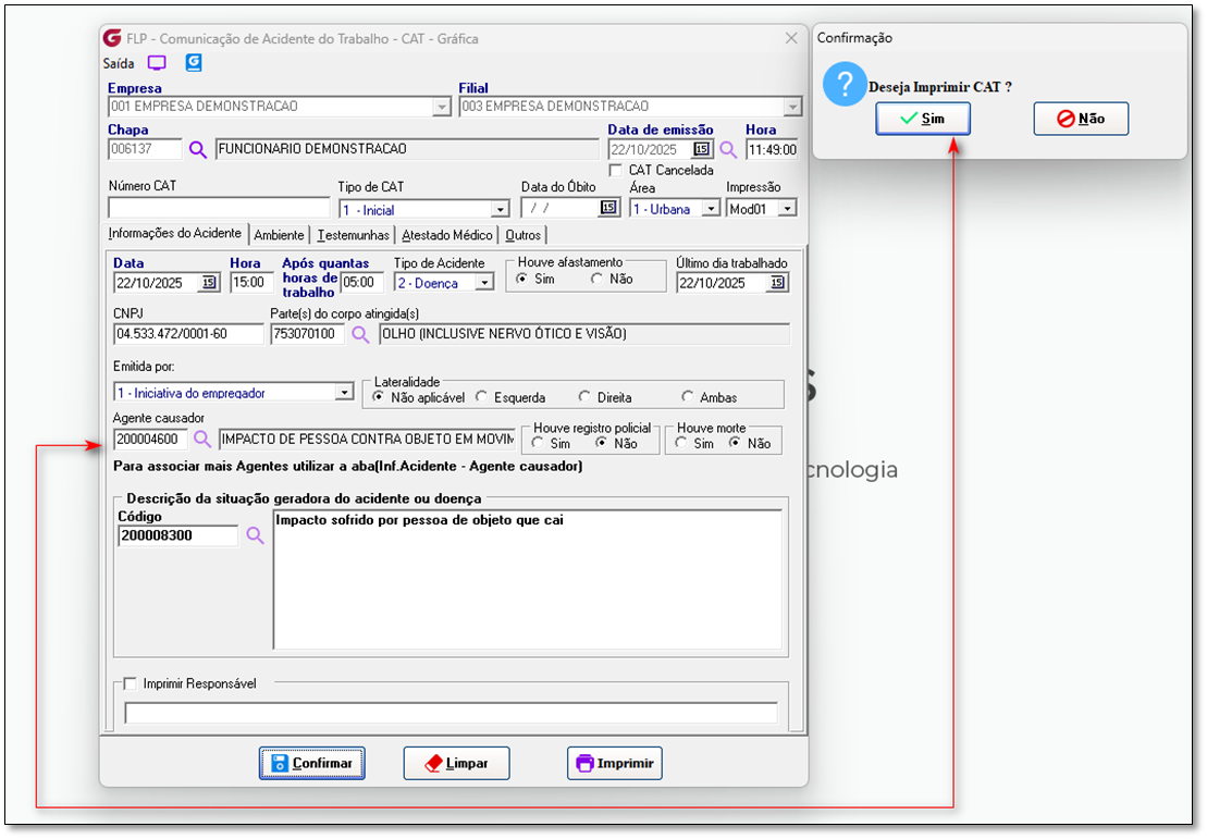 ***IMPORTANTE*** Foi Implementado uma validação no campo "Agente causador" no módulo de Folha de Pagamento, especificamente no processo “Comunicação de Acidente de Trabalho (CAT)”, para restringir os códigos permitidos com base na data do acidente e no tipo de acidente, visando reduzir erros no processo. Condições de Validação: