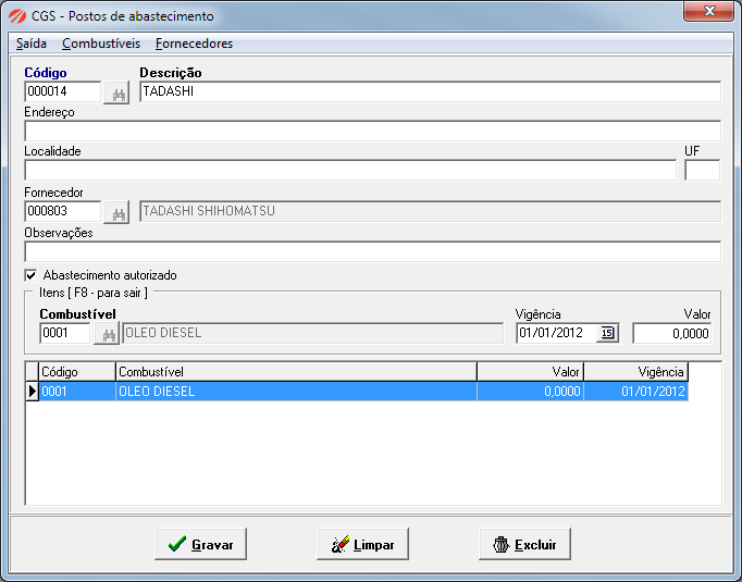 O cadastro e autorização é realizado nesta tela, e poderá ser associado ao abastecimento na tela do plano de viagem.