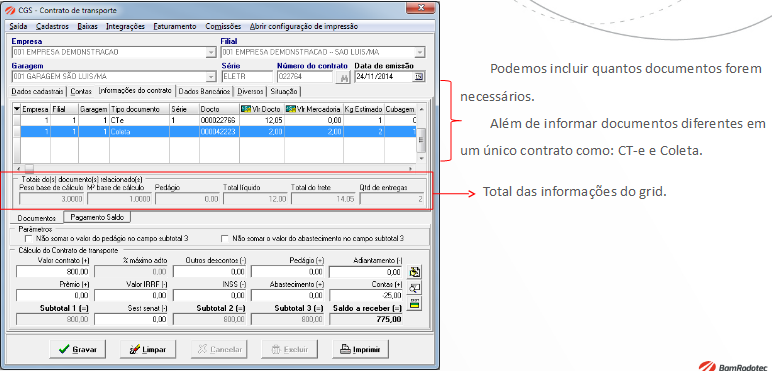 Cadastros > Parâmetros > Contrato de Transporte - Pamcard.