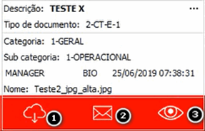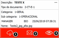 Nesta tela será possível também enviar o anexo por email (2) e realizar o download (1).