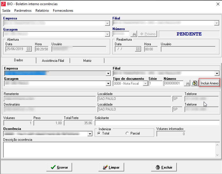 Passo 2: Acesse um BIO cadastrado e através do botão indicado abaixo (‘Incluir Anexos’), acesse a tela de anexos.