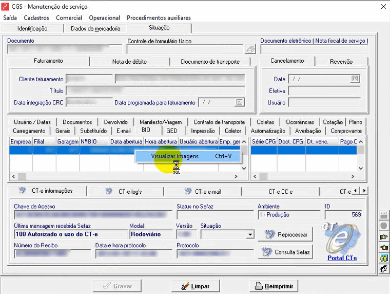Através do módulo Cargas, as imagens anexadas a um BIO poderão ser visualizadas nas telas de ‘Manutenção de Serviço’ e ‘Documento de Serviços’. Abaixo serão apresentados passos para acesso.