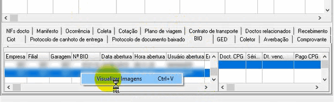 Passo 3: Será apresentado o registro de BIO para o documento. Clique com o botão direito do mouse sobre o registro do BIO apresentado e em seguida, clique sobre a opção ‘Visualizar Imagens’.