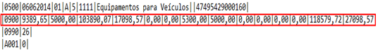 Uma vez preenchidas as informações, o arquivo será gerado com os seguintes campos:
