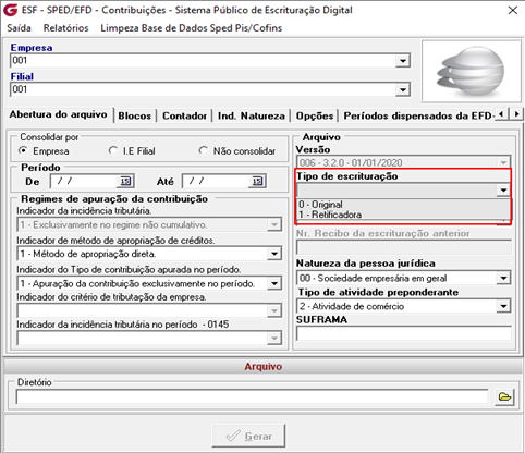Ela ocorrerá de forma automática pelo sistema, sempre que não informado o campo “Tipo de Escrituração” como retificação e se tratar de geração de arquivo original: