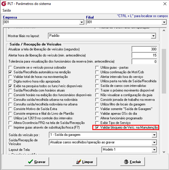 Módulo: Manutenção (MAN) Caminho de acesso: >Movimentação> Bloqueio de O.S. >Plantão> Cadastros> Parâmetros do sistema >Plantão> Movimentação> Saída e recolha automática >Plantão> Movimentação> Saída e recolha + >Fretamento +>Parâmetros> Empresa >Fretamento +>Operacional> Escalas> Geração de escalas >Fretamento +>Operacional> Escalas> Alteração da escala diária |