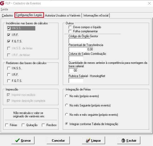 Para que os valores referente ao trabalho intermitente sejam montados corretamente no eSocial, é necessário algumas parametrizações de eventos dentro do Globus.Obs: todos eventos abaixo devem conter código interno, caso contrário, o calculo será feito de maneira errônea.Essa parametrização é composta por cinco eventos, essa parametrização deve ser feito dentro do Globus. o mesmo se encontra no caminho Cadastros > eventos > Cadastro de eventos, os eventos são:1.1 - Remuneração.Passo 1 - Este evento irá entrar como provento e deve conter o evento interno 556. |