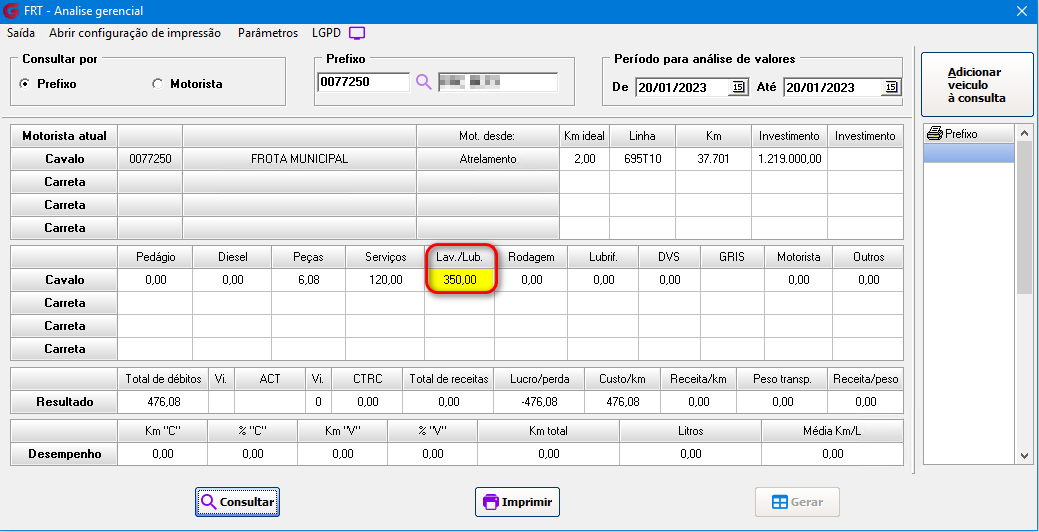 Módulo: Frota (FRT) Caminho de acesso: >Consultas> Análise gerencial |