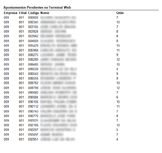 Na Tela inicial RDA o usuário tem a opção de visualizar os funcionários que não fizeram a digitação de seus pontos.