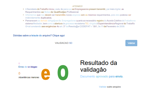 Após todo procedimento realizado, poderá fazer a validação do arquivo no site da Secretaria do Trabalho, Empregador Web.