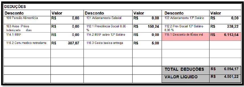 Na imagem abaixo segue cenário de quitação descontando valor de férias correto, considerando o líquido de férias
