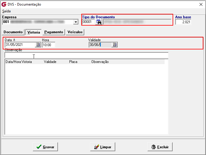 No módulo DVS o usuário irá lançar na tela de documentos a data de validade e vencimento para o tipo de documento.