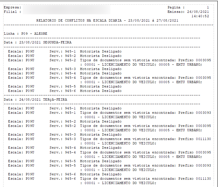 Exemplo do Relatório de Conflitos Emitido após a Geração da Escala