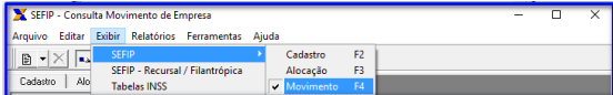 Solução: Acessar na folha o menu: Cadastros > Cadastros Auxiliares >Parâmetros do FAP ![]() Após localizar a alíquota do FAP do ano vigente inserir na Sefip: Exibir > Sefip > Movimento: