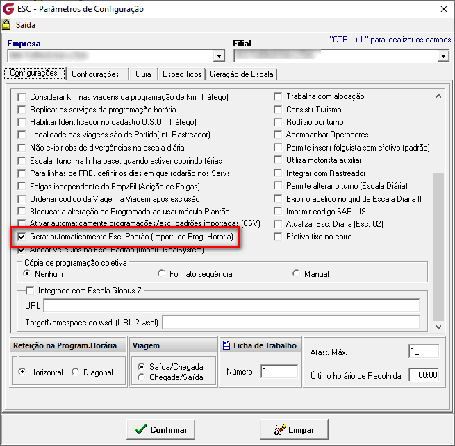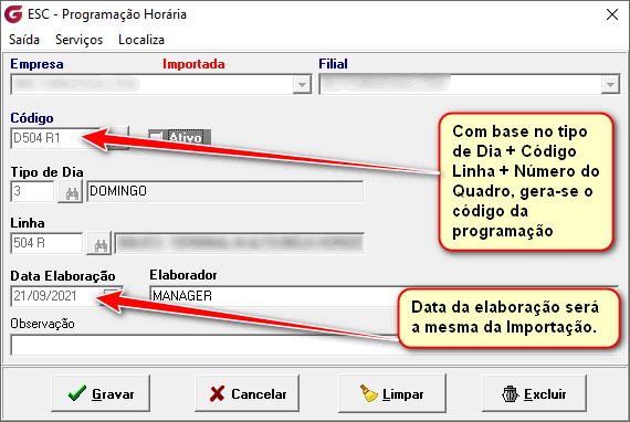 Após selecionar o arquivo no item anterior deste documento e selecionar a opção Gravar, o sistema além de trazer os dados para o Banco Globus, começa a partir da empresa e filial da linha que está no arquivo e relacionada genericamente no Globus criar Programações Horárias e Escala Padrões.