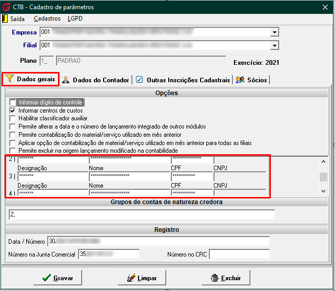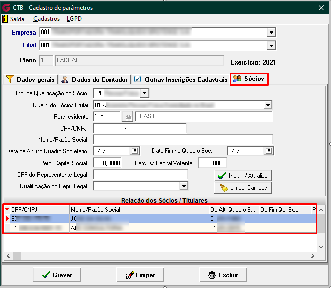 Importante: Todas as informações relacionadas à Pessoa Jurídica (PJ) continuarão sendo exibidas normalmente. No entanto, os dados referentes à Pessoa Física (PF) estarão ocultos e não poderão ser editados.