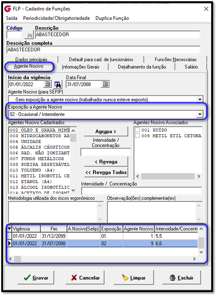 Objetivo desse projeto de trabalho é realizar alteração na gravação do campo “Exposição a Agente Nocivo” no sentido que quando ocorrer cadastros na mesma data o sistema deverá obedecer a exposição que essa foi associada, ou seja, 1 – Habitual / Permanente 2 – Ocasional / Intermitente e 3 – Ausência de Agente Nocivo. |