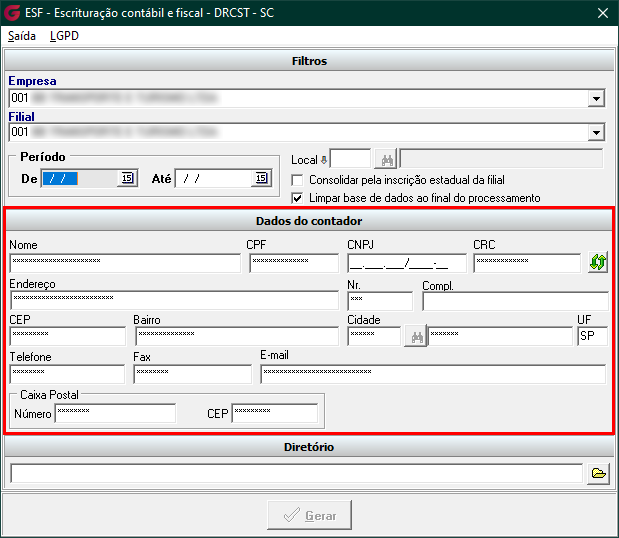 Todos os campos identificados na tela de DRCST - SC como contendo dados pessoais ou sensíveis de Pessoa Física (PF) estarão sujeitos às regras de visualização a partir da data definida no parâmetro 'Ativar a LGPD'. A exibição ou ocultação desses campos dependerá da classificação aplicada no Gerenciador LGPD.