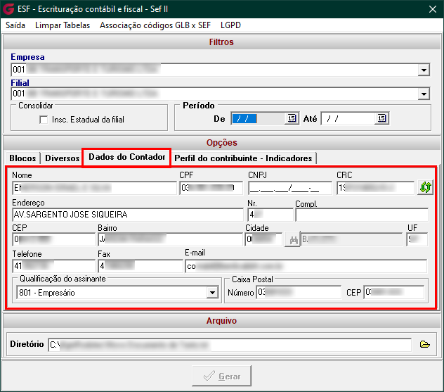 Todos os campos identificados na tela de Sef II como contendo dados pessoais ou sensíveis de Pessoa Física (PF) estarão sujeitos às regras de visualização a partir da data definida no parâmetro 'Ativar a LGPD'. A exibição ou ocultação desses campos dependerá da classificação aplicada no Gerenciador LGPD.