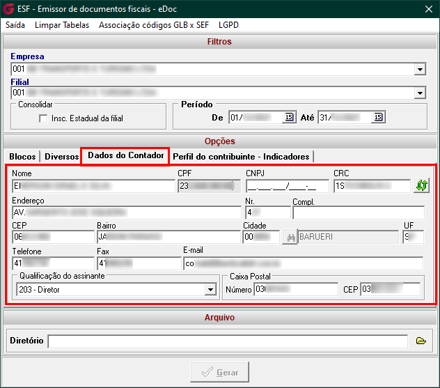 Todos os campos identificados na tela de Emissor de documentos fiscais - eDoc como contendo dados pessoais ou sensíveis de Pessoa Física (PF) estarão sujeitos às regras de visualização a partir da data definida no parâmetro 'Ativar a LGPD'. A exibição ou ocultação desses campos dependerá da classificação aplicada no Gerenciador LGPD.