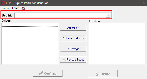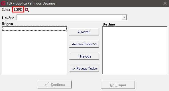 Restringir a visualização nível a campo da tela de Duplica Perfil dos Usuários no menu LGPD. |