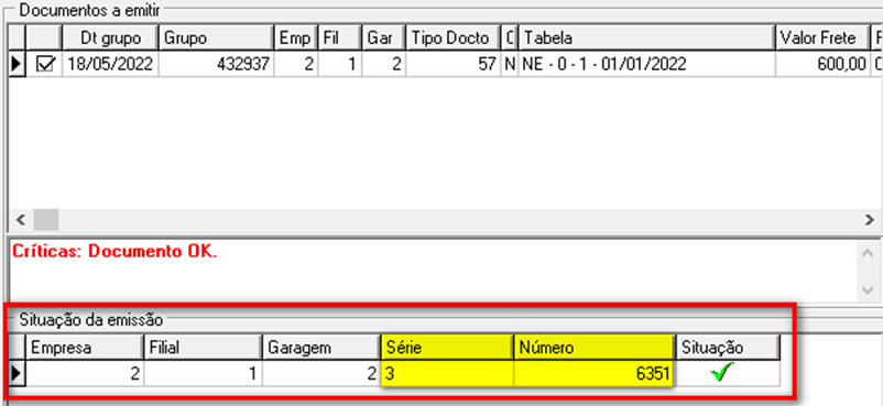 Realizada a importação, foi visualizada a NF importada na tela de emissão automática por NF.