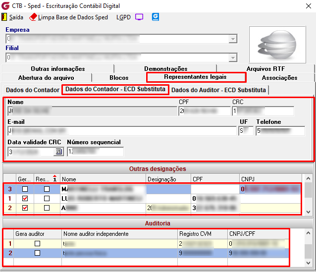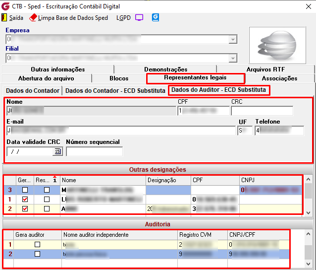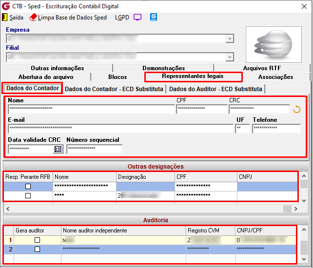 Todos os campos identificados na tela de Sped-Escrituração Contábil Digital como contendo dados pessoais ou sensíveis de Pessoa Física (PF) estarão sujeitos às regras de visualização a partir da data definida no parâmetro 'Ativar a LGPD'. A exibição ou ocultação desses campos dependerá da classificação aplicada no Gerenciador LGPD.