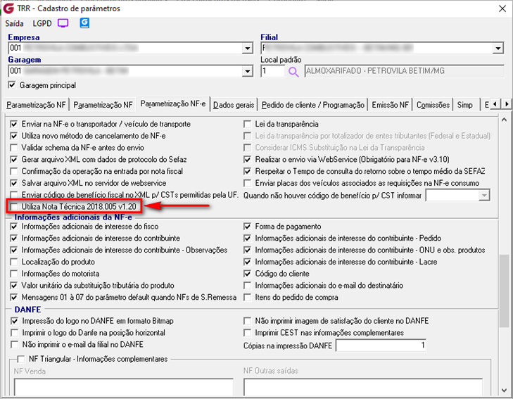 Foi criado o parâmetro ‘Utiliza Nota Técnica 2018.005 v1.20’.