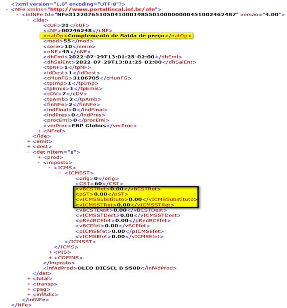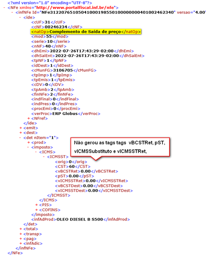 emissão destas NFe, não serão geradas as tags vBCSTRet, pST,
