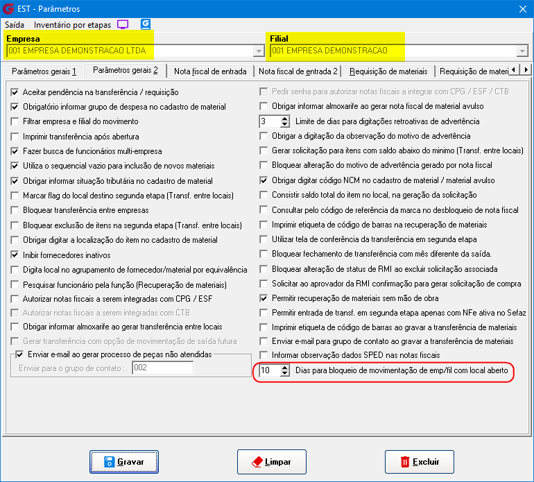 Definir por empresa/filial, quantidade de dias para permissão de movimentação em locais com mês aberto. |