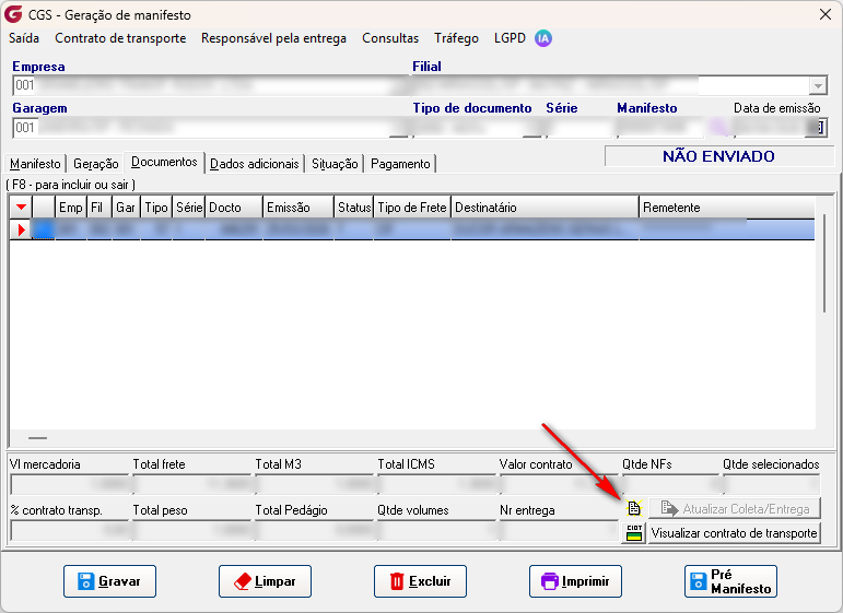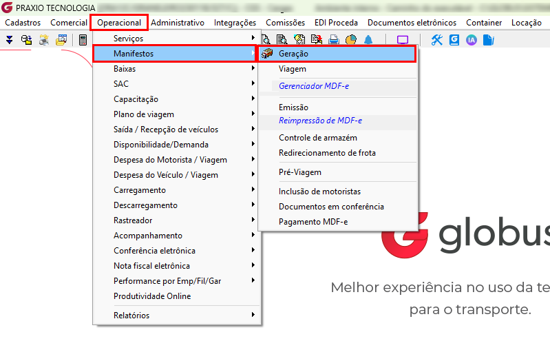 Operacional > Manifestos > Geração.