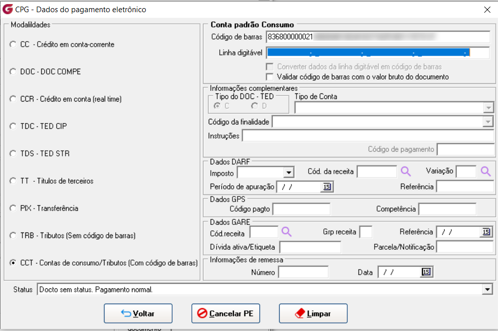 Módulo CPG àProcedimentos diáriosà Pagamento eletrônico à Código de barras/Linha digitável
