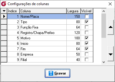 Figura 4. Tela de Configuração de Colunas Grid de Horários.