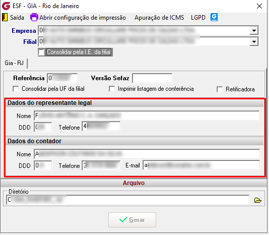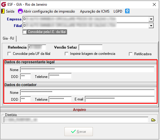 Todos os campos identificados na tela de GIA - Rio de Janeiro como contendo dados pessoais ou sensíveis de Pessoa Física (PF) estarão sujeitos às regras de visualização a partir da data definida no parâmetro 'Ativar a LGPD'. A exibição ou ocultação desses campos dependerá da classificação aplicada no Gerenciador LGPD.