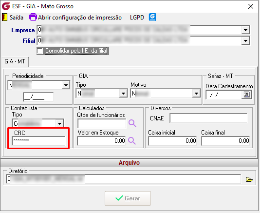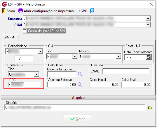 Todos os campos identificados na tela de GIA - Mato Grosso como contendo dados pessoais ou sensíveis de Pessoa Física (PF) estarão sujeitos às regras de visualização a partir da data definida no parâmetro 'Ativar a LGPD'. A exibição ou ocultação desses campos dependerá da classificação aplicada no Gerenciador LGPD.