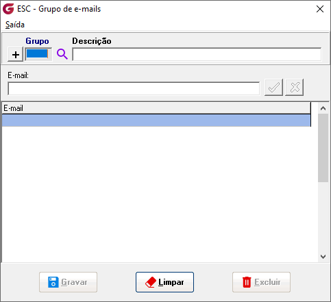 Na tela de Cadastros > Grupo de E-mail, o usuário pode cadastrar um grupo de E-mail que irá receber notificação por E-mail quando o sistema gerar a escala de forma automática.