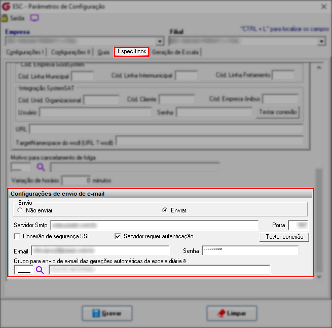 Após a configuração do Grupo de E-mail, o usuário irá configurar as parametrização do E-mail.