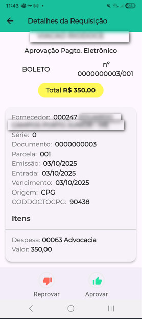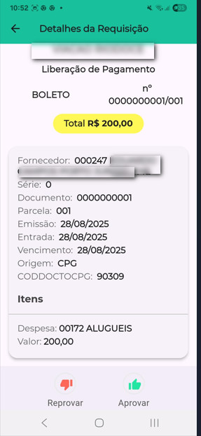 Disponibilizar a liberação de documentos para pagamento, dentro do app Aprove-me. |