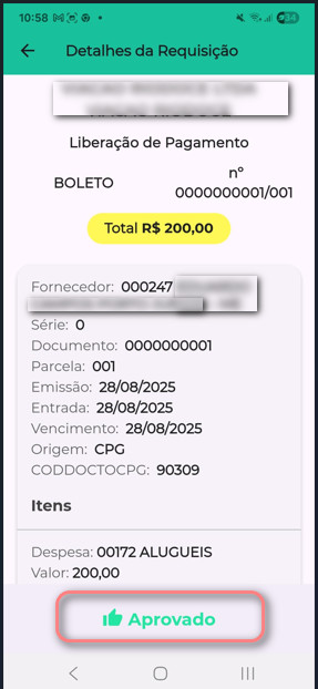 Ao lançar o documento ele ficará disponível apenas 01 única vez para liberação no app Aprove-me: