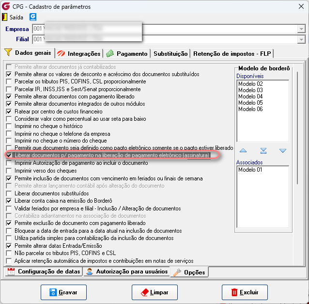 - O usuário para liberação no app deverá ser definido no cadastro de parâmetros do CPG;