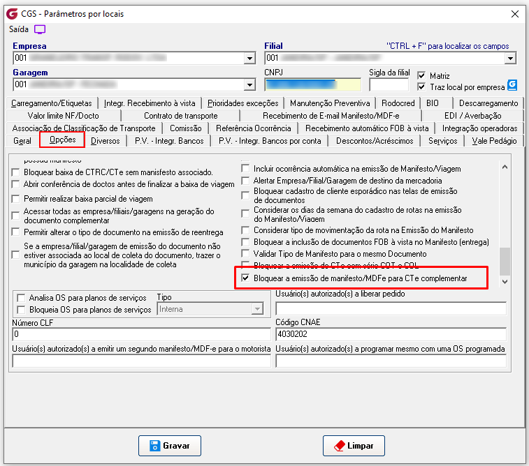 Foi criado um parâmetro local para que bloqueasse a emissão de MDFe (58) e Manifesto (04) para documentos complementares, sendo eles emitidos pelas telas de geração de manifesto/viagem ou logo após emitir o CTe