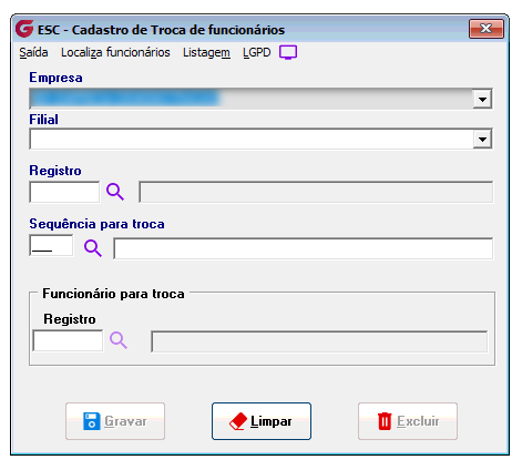 Figura 1. Tela de Cadastro de Troca de Funcionários.
