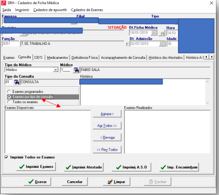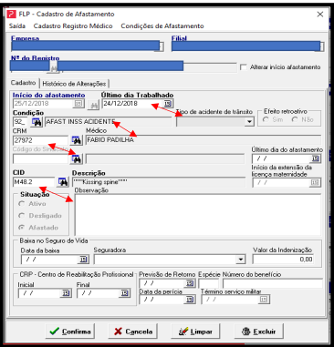 Lançamento pelo módulo RH “Ficha Médica” Origem S2230: